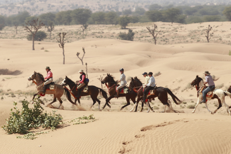 The horse safari that you are going to embark on takes you through the sandy desert of Rajasthan. The Thar Desert of Rajasthan is an arid area with very little vegetation.